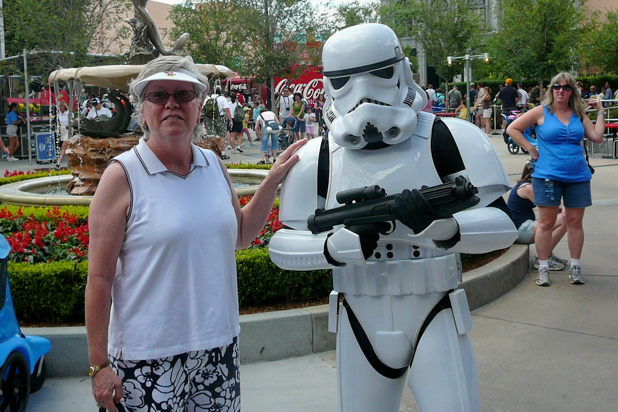 | ..we ran into a few green soldiers and Lyd made a friend as this was a Star Wars weekend. |