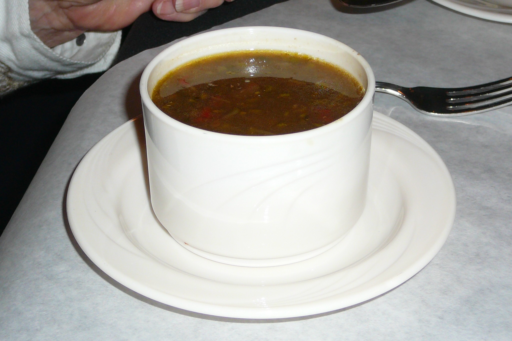 With her entree, Elaine had a cup of the Vegetable Beef Soup