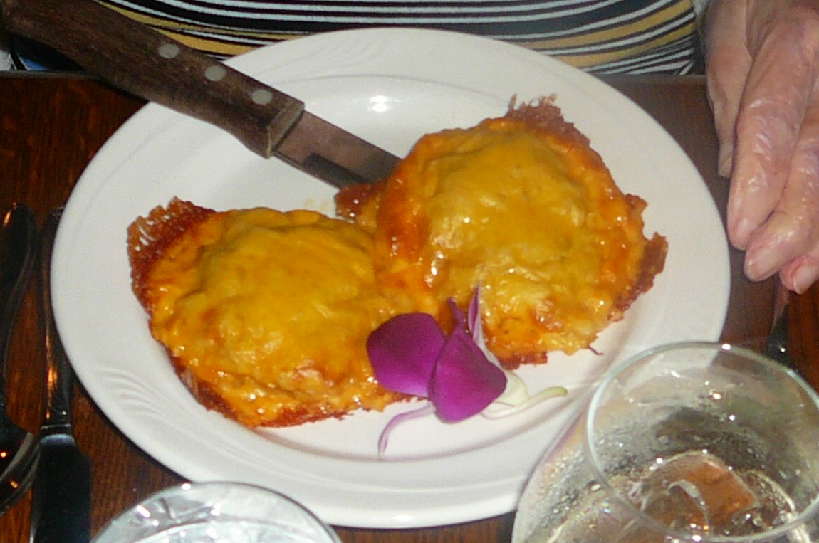 , of all lump Crab Imperial atop English Muffins topped with melted cheese.