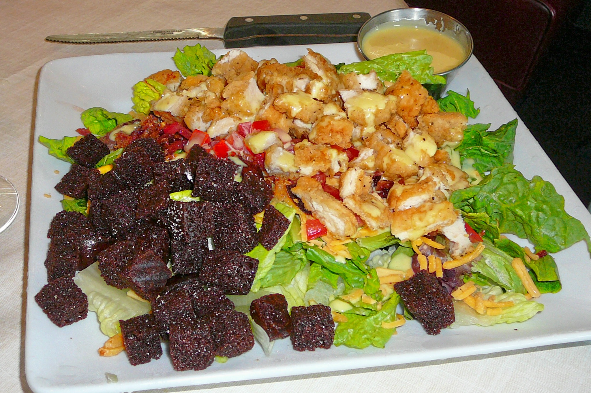 | Margaret selected Ruby Tuesday for the three of us. Kyle was our server. Margaret chose a Dewar's and scotch for her drink, while Lyd selected a gin martini. I stood with my regular Manhattan. Lyd prepared a salad plate for Margaret of a few prepared salads, but they didn’t go over well. I also had a salad plate. Margaret ordered her lobster tails. Lyd had her Carolina Salad and I ordered my half-rack of Memphis dry ribs with baked potato and mushrooms. Lyd and I each had a 2nd drink. Most of the veggies were boxed to take home for soup preparation. | |||
