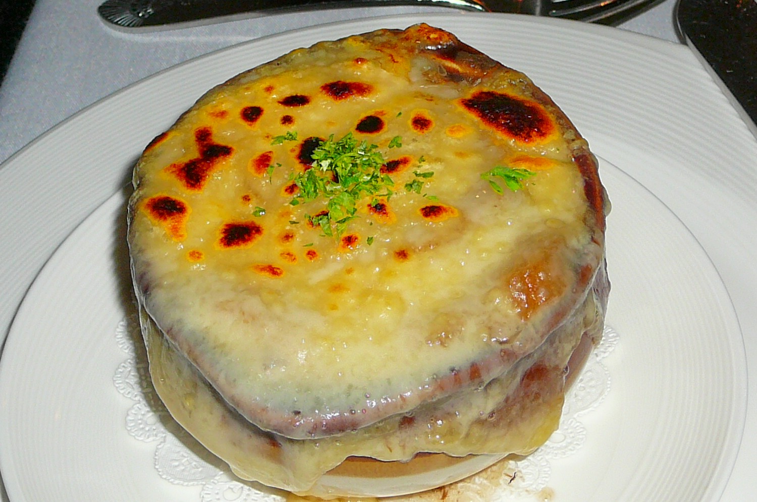 Margaret and I started with Cream of Mushroom Soup (4) and Lyd had French Onion Soup (5.95).
