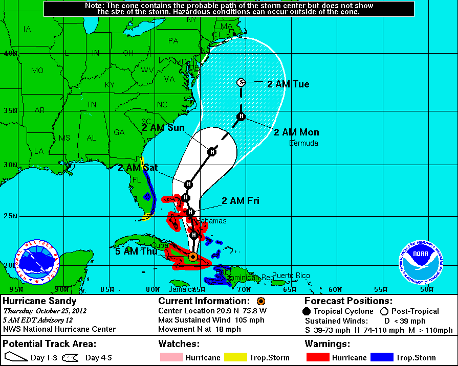 2012-10-26 0500 EDT Hurricane 80 mph NW at 13 mph |