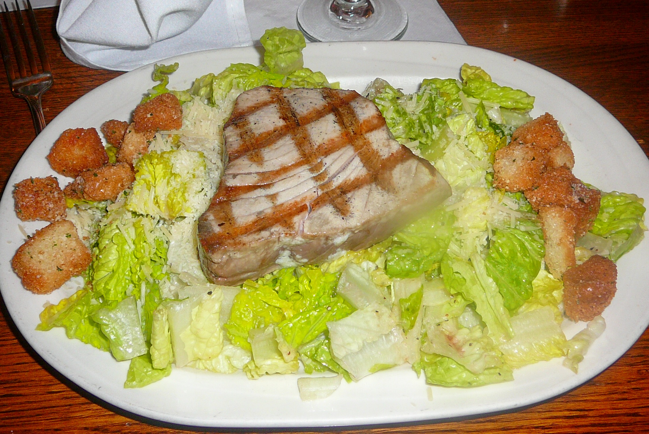 | Margaret has selected Goin' Nuts for lunch. We all split an order of the Fried Oyster appetizer (9.95). Margaret followed this with a Chicken Supreme on lettuce (9.95) while Lyd had the Chicken Supreme Sandwich (9.95). I had a cup of Maryland Crab Soup (4.50) though I couldn’t actually find any crab in it and then had the Seared Tuna Caesar Salad (9.95) which was excellent. | |||||||||||||||
