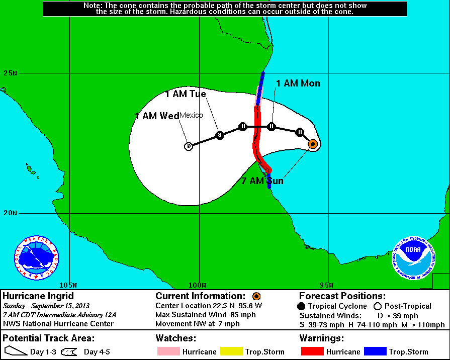 2013-09-15 1600 CDT Hurricane 75 mph WNW at 6 mph |