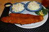 My entrée was the chef special of fried catfish (13.95) of a sizeable portion of catfish with sides of cole slaw and potato salad.