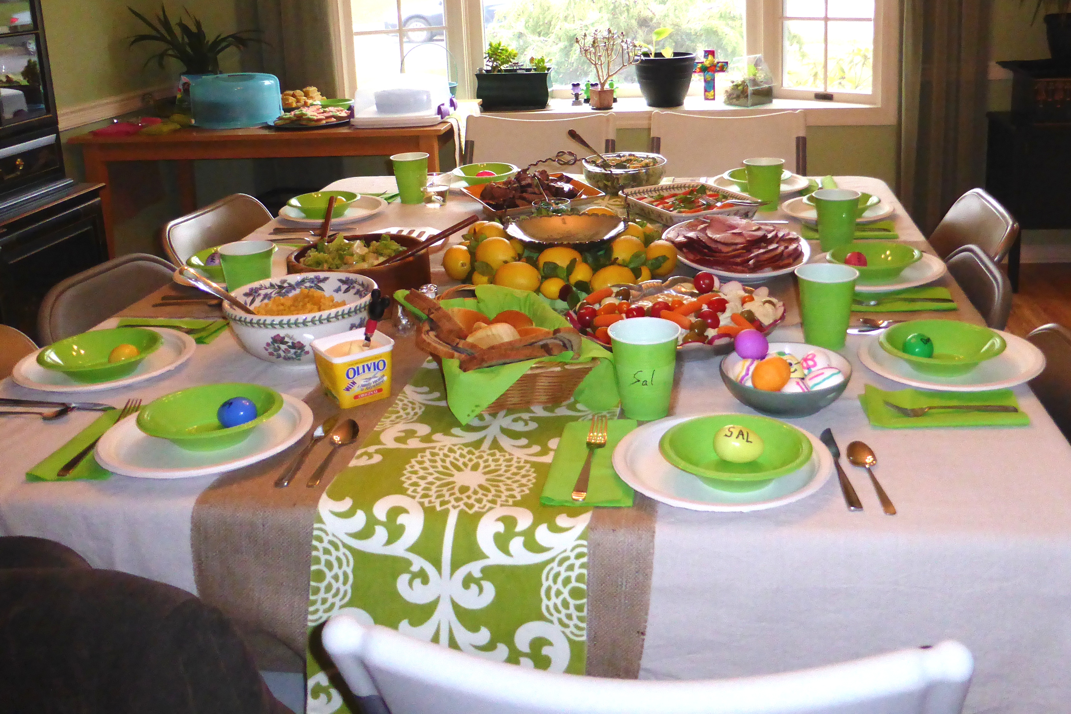 Sunday: At 0550, it's 42 and overcast. The kids made a nice breakfast of eggs, sausage, bacon and English Muffins. The family started to gather by 2 and Easter Dinner was served, in two rooms, at 3. With lots of good food and good company, it broke up around 1830. By 2040, Lyd and I both went to bed.