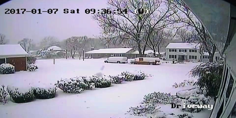At 0800, Lew tried to get her car out of the garage without success and we are at 4" and the Railroad Club has canceled today's Open House.