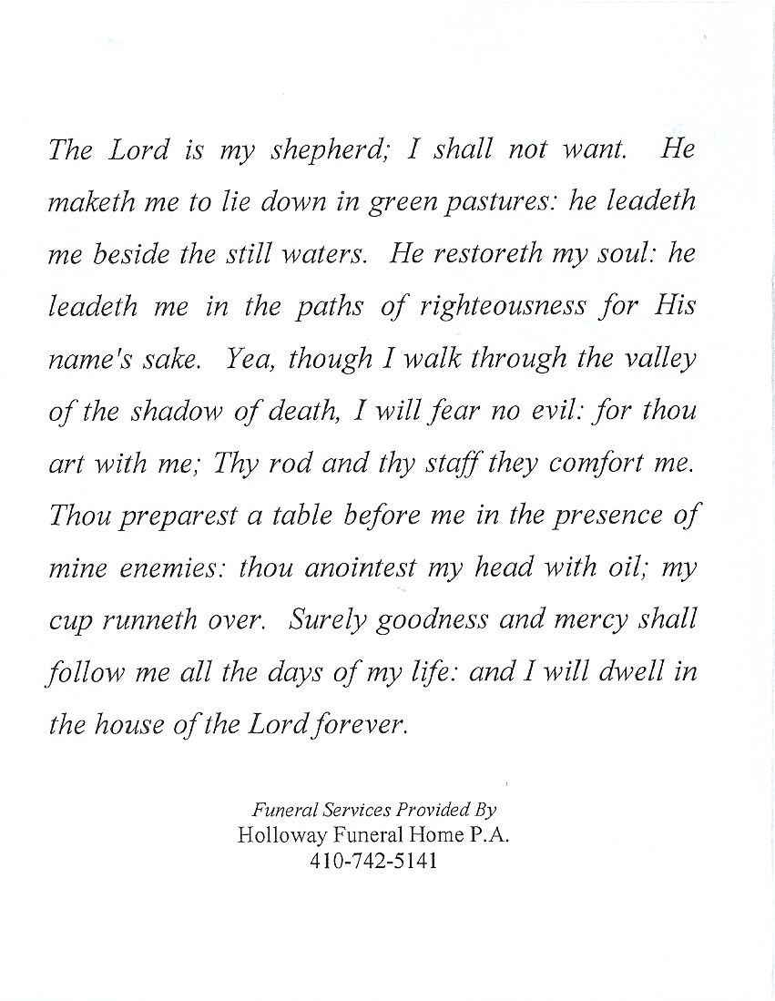 | February 12th, Victor H. Laws, Jr. died in Wicomico Nursing Home at the age of 97. The funeral is February 18th. | |||||||||||||||||||