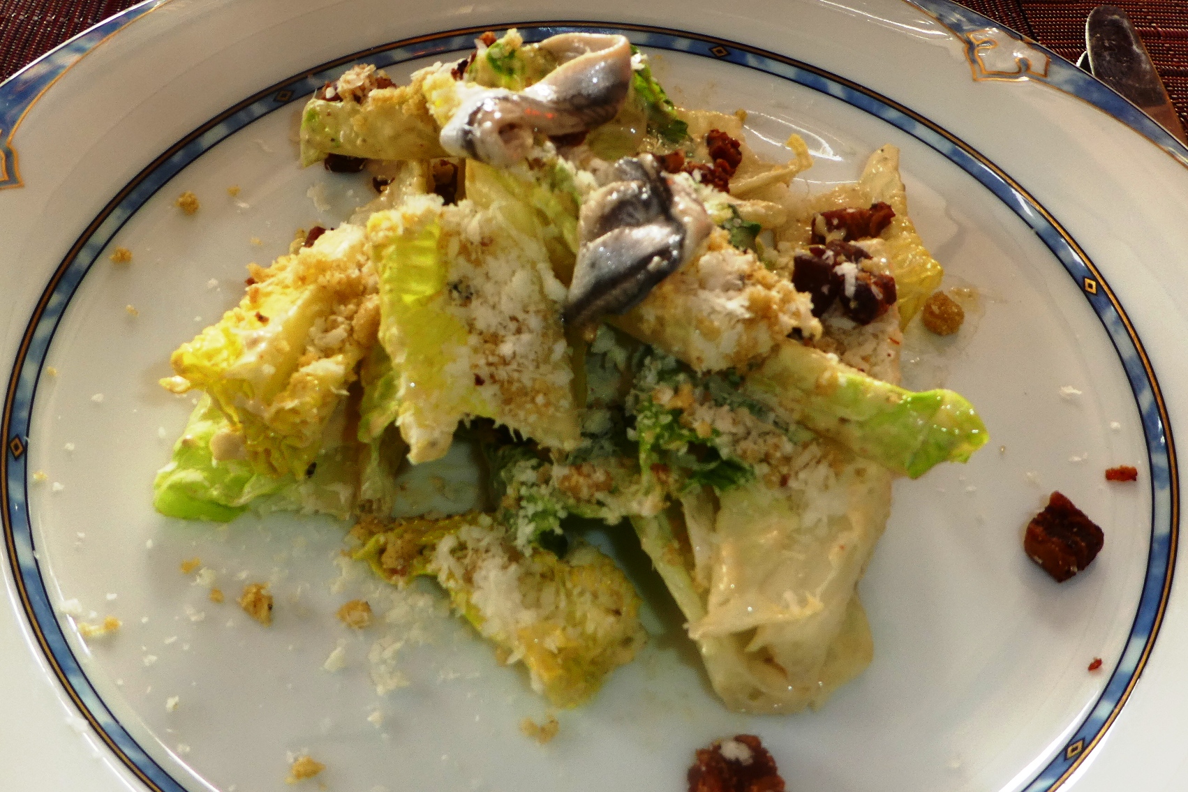 I picked the Romaine Hearts (15) with house pancetta, breadcrumbs & classic Caesar dressing (including anchovies!).