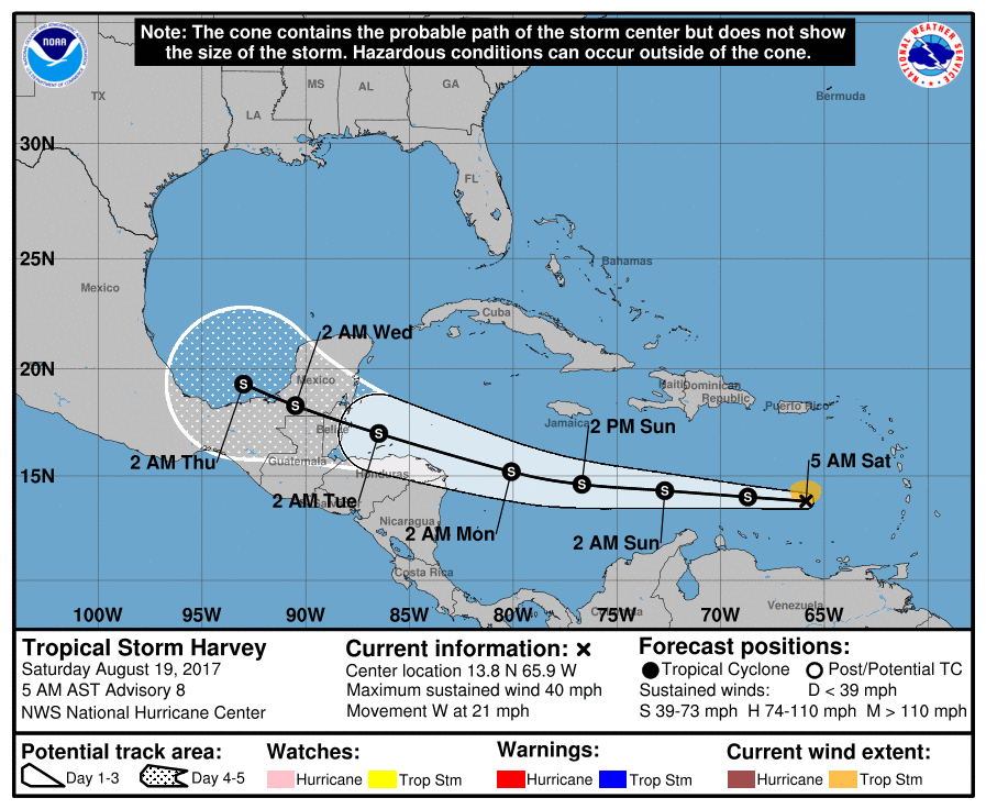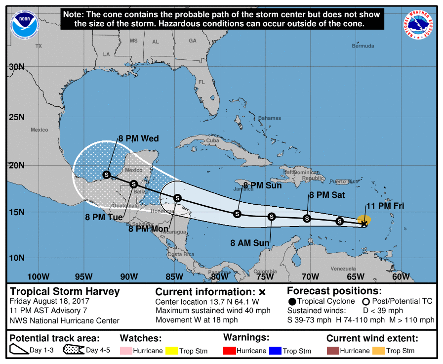 2017-08-18 1100 AST Tropical Storm 40 mph W at 21 |
