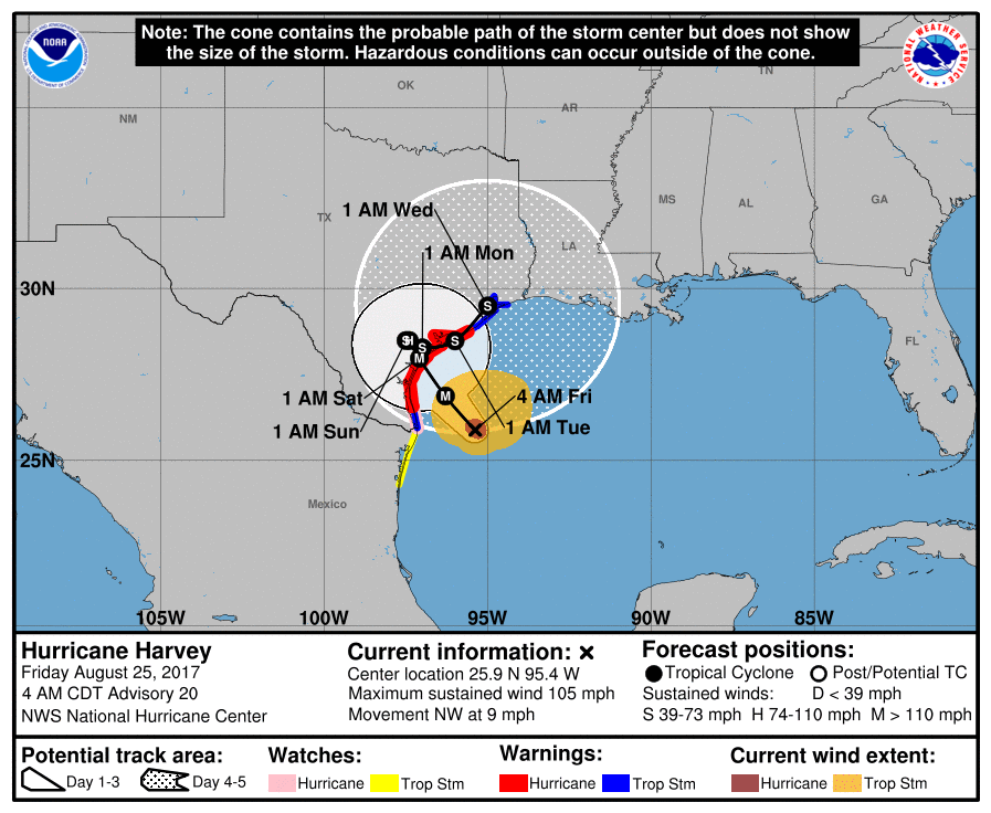 2017-08-25 2200 CDT Cat 4 130 mph NW at 7 |