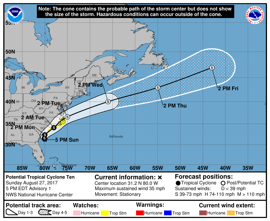 2017-08-27 1700 EDT Potential Tropical Cyclone 35 mph Stationary |