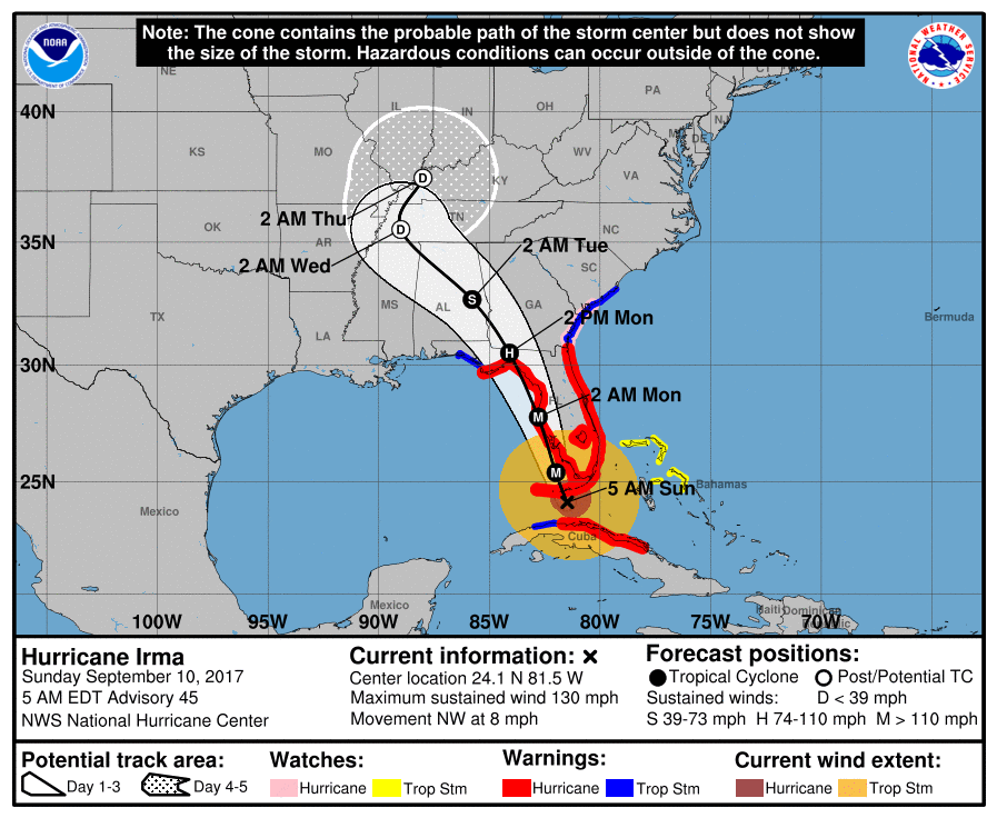 2017-09-10 0500 EDT Cat 4 130 mph NW at 8 |