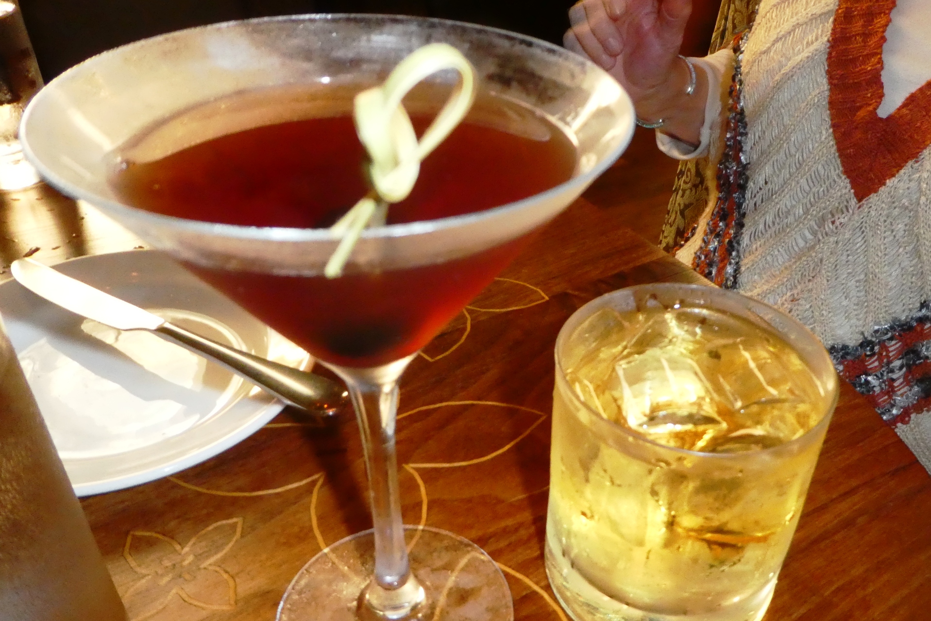 Lew started with Dewars and Soda (9) while I had my Maker’s Mark Manhattan (13).