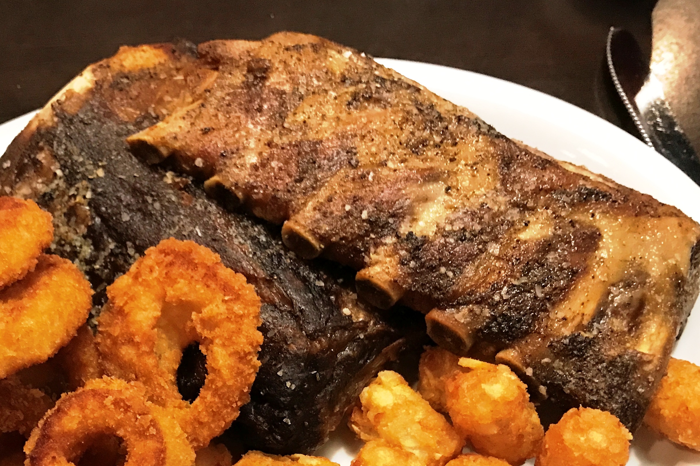 | Tom selected Ruby Tuesday for Tuesday's lunch out. Lew started with a glass of Beringer White Zin (8) and I had Iced Tea (2.99). We both added the Garden Bar (4.99) to our entrees. Lyd had a Classic Burger (10.99) with fries. I had a full rack of Texas Ribs (21.99) with tater tots and onion rings. | |||||||||||||||||||||