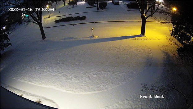 At 0710, it’s 34 and we got about 1-2” of snow. By 0900, ExpressLawn had cleared our driveway and walks even though there is still a gentle snow.