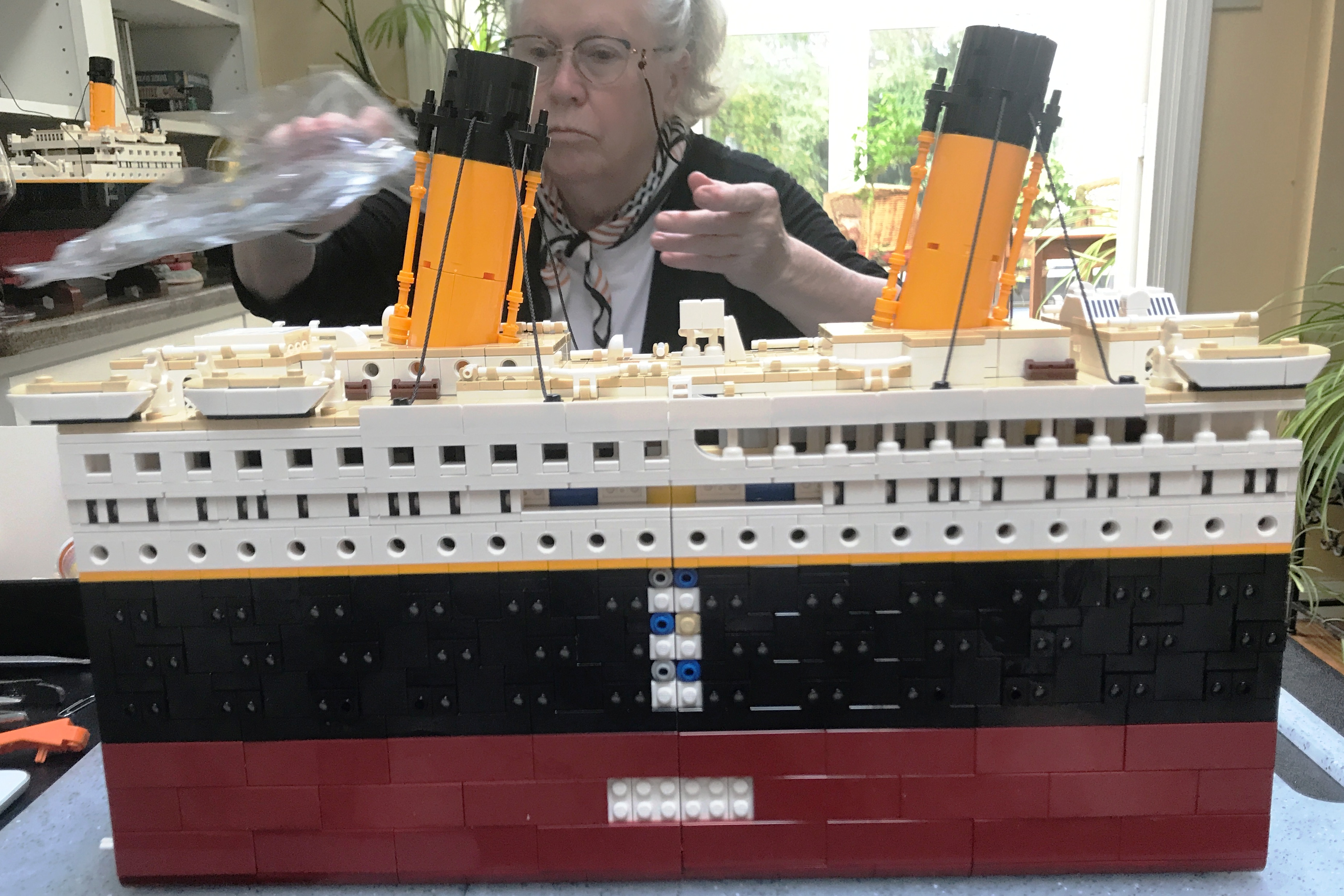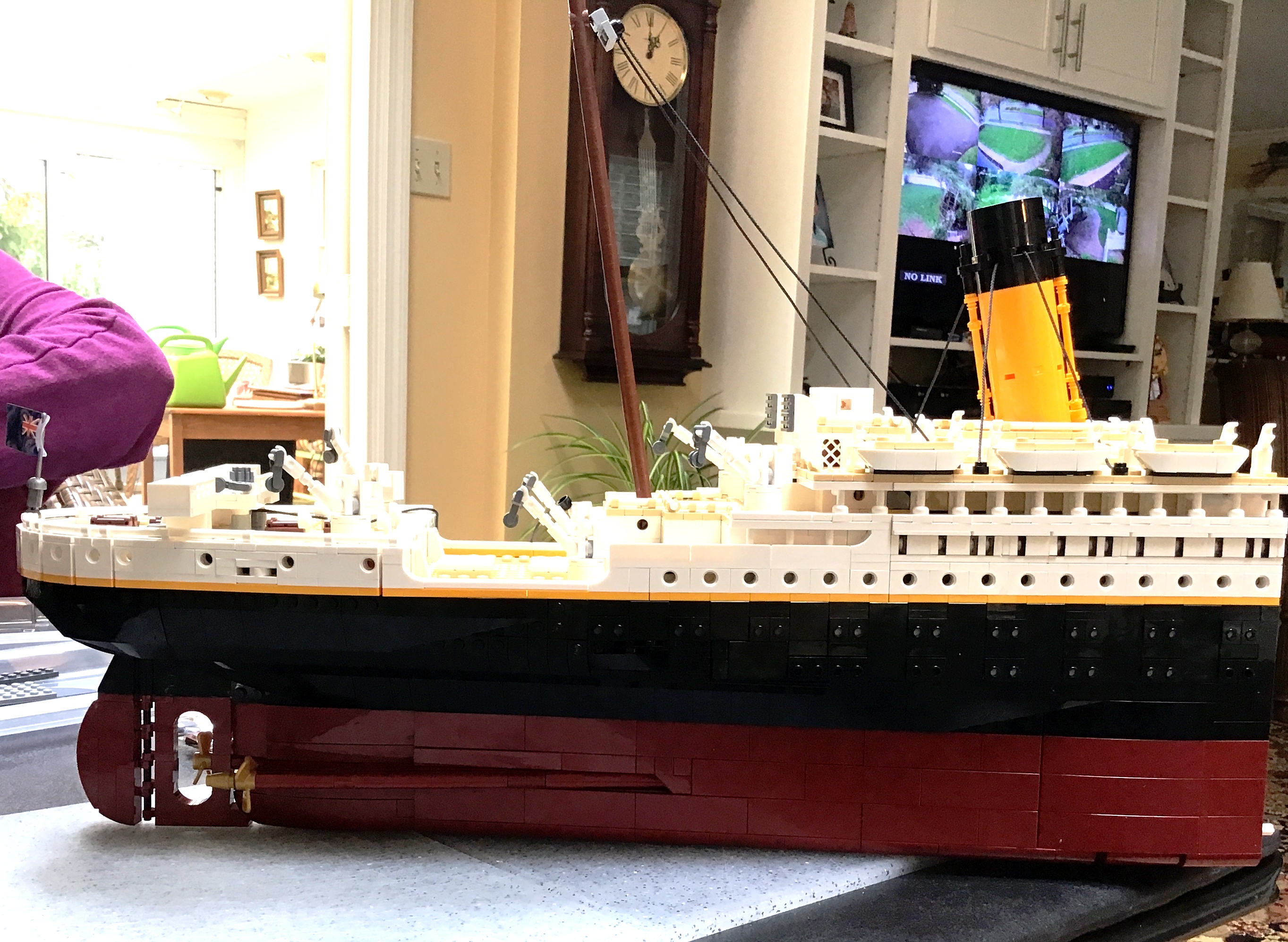 In a 36 pound box, the RMS Titanic is comprised of three sections: Bow, Midships and Stern. Each has several steps.