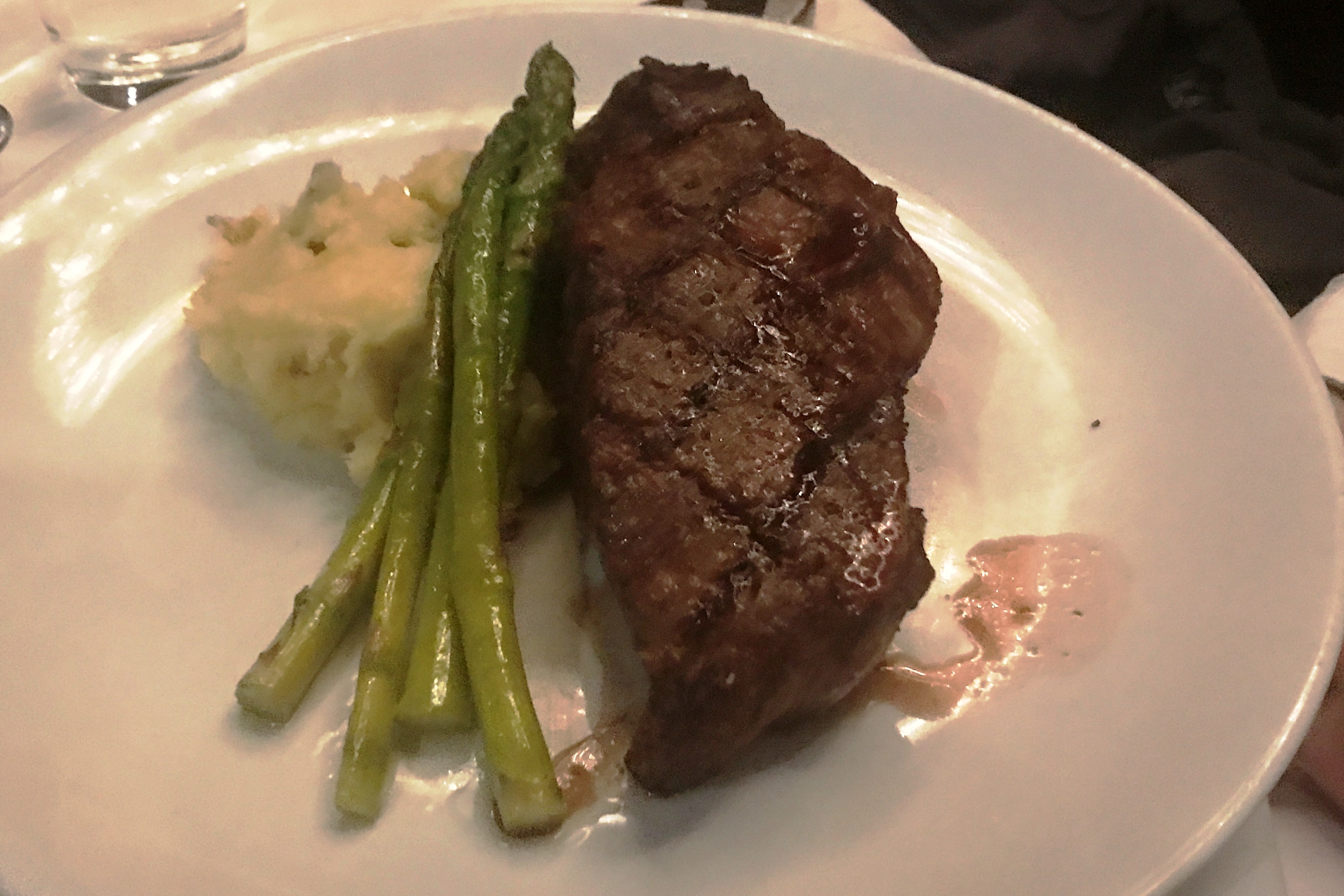 Sal started with ½ grilled Caesar Salad(6) and then had the Prime NY Strip (54).