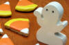 Put a quarter of the cookie icing into a small bowl (this will be used for the white tips of the candy corns).