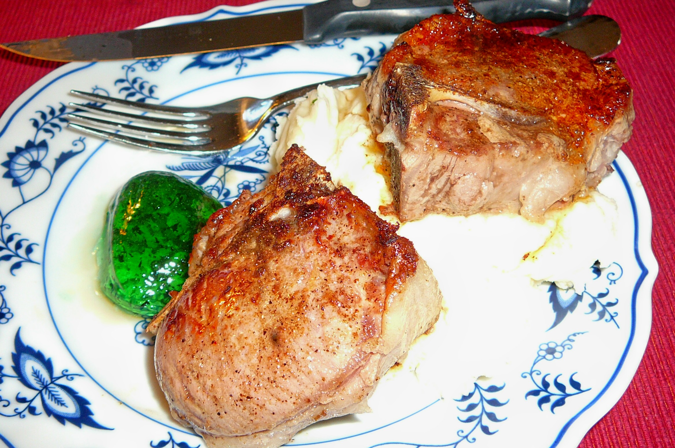 | Dust the chops, liberally, with the seasonings. Pan fry until done! | |